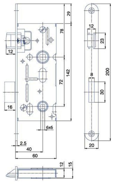 hĺbka zadlabania: 60 mm rozstup: 72 mm povrchová úprava: zinok biely pravoľavý WC zámok orech 6 x 6 mm