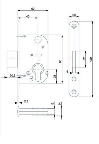 hĺbka zadlabania: 60 mm hĺbka vložky: 40 mm povrchová úprava: zinok biely pravoľavý
