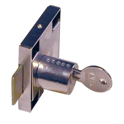 Poniklovaný zásuvkový zámok je určený na uzamknutie zásuviek písacích stolov, skriniek a komôd.