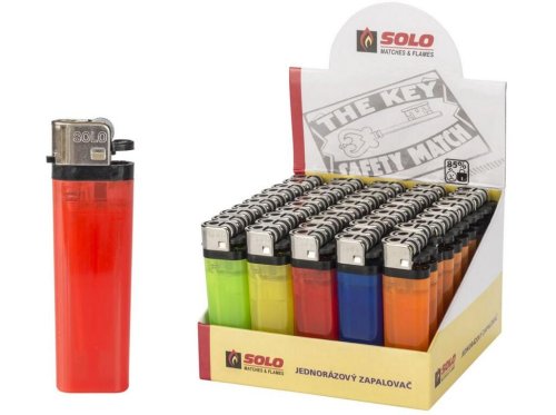 Regulácia plameňa horenia, opatrený detskou poistkou, rôzne farebné prevedenie, slúži na podpaľovanie cigariet, sviečok.