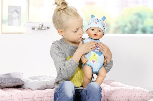Bábika roní slzy (po stlačení hrudníka), pije vodu z fľaštičky, jej špeciálnu kašičku, kaká, zatvára oči , má novo riešenú pohyblivosť kĺbov, pre ľahké obliekanie.