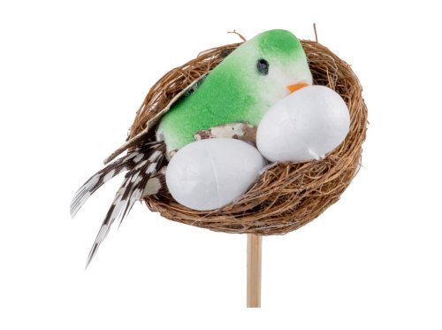 Zápich 50mm vtáčik v hniezde a vajíčkami + špajle mix farieb
