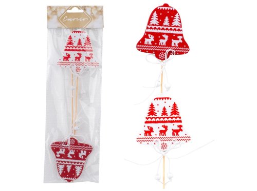 Dekoračný drevený zápich s motívom zvončeka o rozmere 75×80 mm, upevnený na špajli pre ľahké zapichnutie. Balenie obsahuje 2 kusy, farebné prevedenie je dodávané v mixe červenej a bielej farby, jednotlivé kusy sa môžu líšiť vzhľadom.