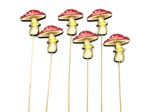 Zápich drevo 56x65mm+špajle muchotrávka, červená, biela
