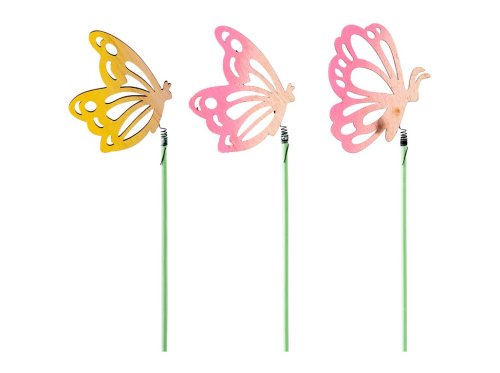 Farebný drevený zápich s motívom motýľov je veselým doplnkom jarnej a letnej výzdoby. Vďaka praktickej špajli ho ľahko umiestnite do kvetináčov, hrantíkov alebo dekoratívnych aranžmánov. Motýle o rozmere 60×70 mm sú vyvedení v pestrom mixe farieb a dodajú priestoru ľahkosť a hravosť. Ideálne na oživenie interiéru i krytých vonkajších dekorácií. Tovar je dodávaný v mixe. Doručovaný tovar je vyberaný náhodne a nie je možné vybrať konkrétne prevedenie.