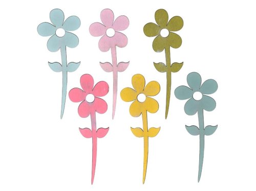 Zápich drevo 6ks 55x150 mm kvetina, farebná s lepítkom