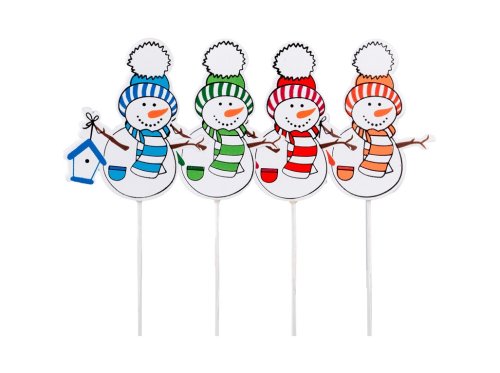 Dekoratívny drevený zápich so snehuliakom je ideálny doplnok do kvetináčov, kvetináčov, aranžmánov alebo vianočných dekorácií. Motív snehuliaka je spracovaný z dreva a doplnený praktickou špajľou pre ľahké zapichnutie. Farebný mix dodáva dekorácii hravý vzhľad a každý kus je originálny. Skvele sa hodí na zimnú a vianočnú výzdobu interiéru i krytých vonkajších priestorov. Tovar je dodávaný v mixe. Doručovaný tovar je vyberaný náhodne a nie je možné vybrať konkrétne prevedenie.