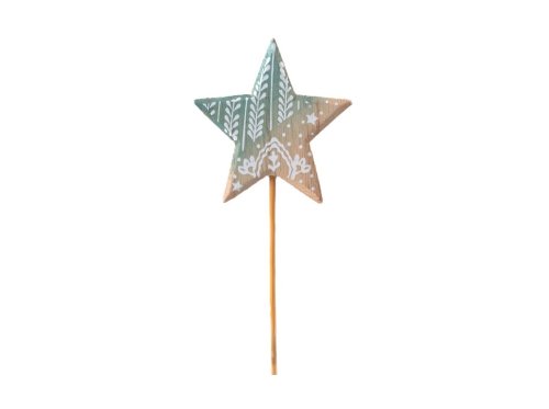 Zápich drevo 75x85mm + špajle ván. hviezda, prírodná, modrá