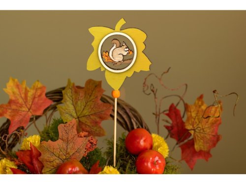 Zápich drevo 85x90mm+špajle list s veveričkou, farebná