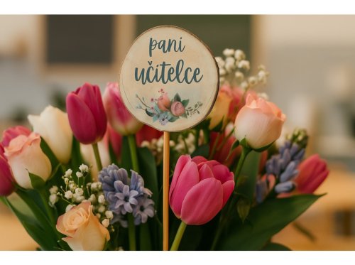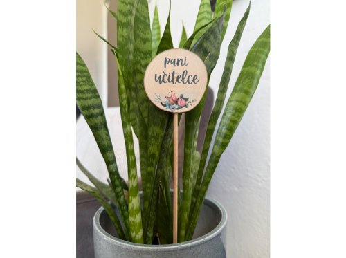 Originálny a jemný doplnok, ktorý poteší každú pani učiteľku. Tento okrúhly zápich z prírodného dreva je zdobený kvetinovým motívom a elegantným nápisom „Pani učiteľke“, vďaka ktorému sa stane krásnym detailom v kvetináči, kytici alebo darčekovom balení.