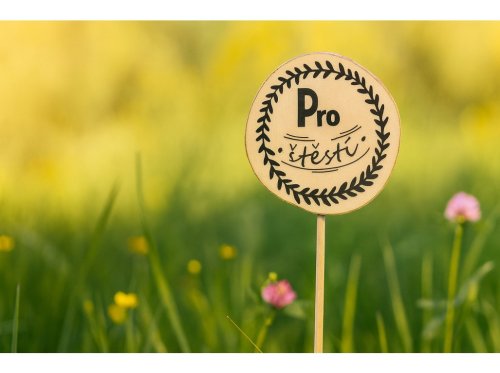 Drevený zápich do kvetináča alebo k bylinkám s potlačou - Pre šťastie. Priemer kolieska je 5 – 8 cm, výška zapichovátka je približne 30 cm. Milý darček a dekorácia do bytu či domu.