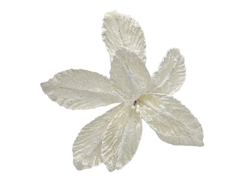 Zápich látkový kvet 220 mm zasnežený, krémový