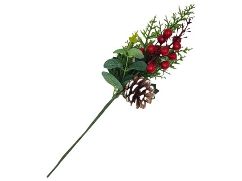 Zápich vetvička 370 mm s eucalyptom, šiškou a bobuľami