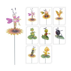 veľkosť zvieratka: 12,5 cm veľkosť tyčky: 59,5 cm materiál: kov mix druhov: včela, mravec, motýľ, žaba, vták, lienka, vážka, káčatko