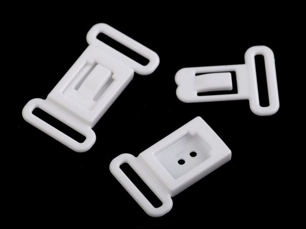 Malé plastové zapínanie je zložené z dvoch častí. Využijete ho ako zapínanie na motýlika alebo kravatu. [Je vhodné aj na dojčiace podprsenky.] Posunovač nie je súčasťou balenia, ale nájdete ho pod kódom 830435.