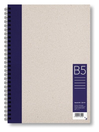 Bez ohľadu na to, či ste študent, alebo už ste zo školy dávno preč, tento krúžkový zápisník B5 je ideálnym spoločníkom pre vaše každodenné úlohy. br brKlasické zápisníky už vás nudí? Hľadáte niečo originálne, ale napriek tomu praktické? Potom práve pre vás je ideálny tento zápisník v netradičnom formáte B5. Pevnú obálku zdobí farebné knihárske plátno – na výber je v troch rôznych farbách. br brZápisník obsahuje papier Holmen Book Cream 80g, ktorý má príjemnú textúru a krémovú farbu. Dobre sa do neho píše a vďaka ľahkému zafarbeniu z neho nebolia oči. br brZápisník, linajkový, B5 br• Formát: B5 br• Lineatúra: Linkovaná br• Počet listov: 50 br• Papier: Holmen Book Cream 80g br• Väzba: Dvojitá krúžková špirála Twin Wire br• Pevné dosky vyrobené z papierovej lepenky br väzba Twin Wire umožňuje ľahké otáčanie listov až o 360 ° bez posunutia stránok. Zápisník zostane otvorený na zvolenej stránke.