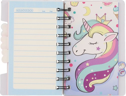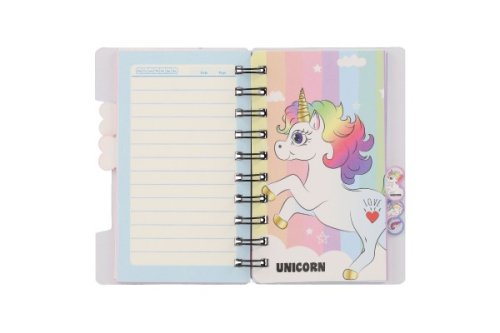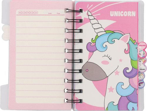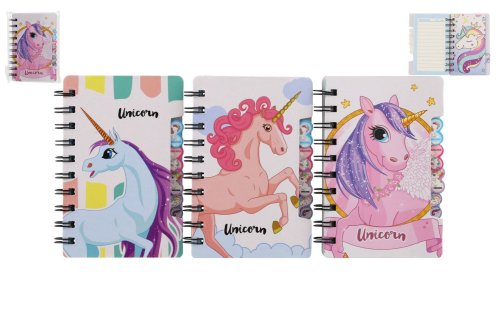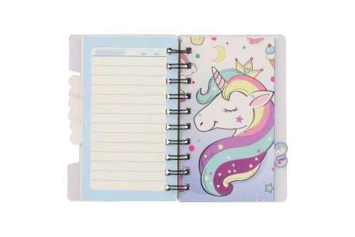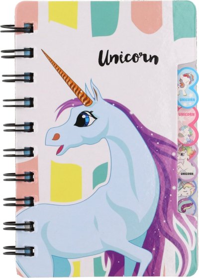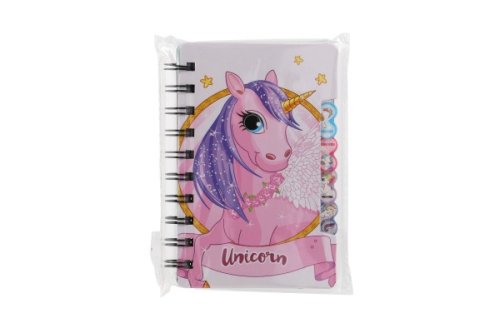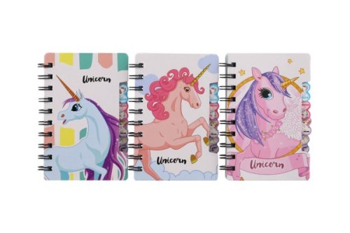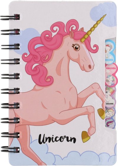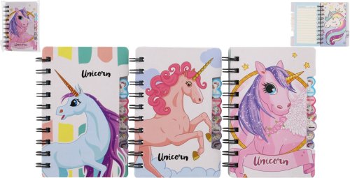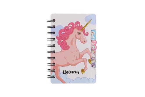 Krúžkový zápisník s motívmi jednorožca. Mini trhací zošítok na najdôležitejšie poznámky a kresby Vašich najmenších. Veľká výhoda je, že zápisník môžete vziať všade so sebou a nezaberie veľa miesta! Obsahuje cca 60 linajkových listov. Bez ceruzky. Rozmer zápisníka: 14,5 x 10 cm. Nie je hračka.
