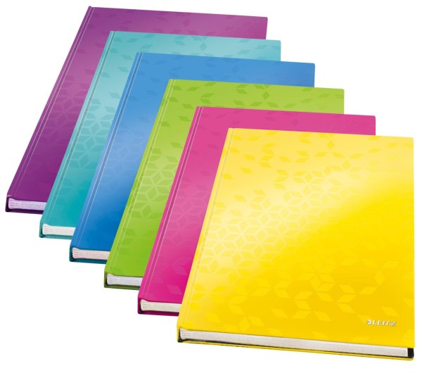 Linkovaný zápisník vo výrazných farbách WOW Pevná a odolná väzba chráni listy pred vypadnutím Polaminovaný lesklý povrch, šitá väzba 80 listov, 90 g/m2