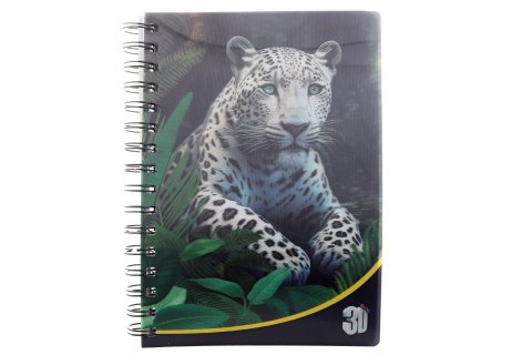 Zápisník s 3D efektom s motívom Levharta. V zápisníku je celkom 100 listov, z ktorých je 50 linkovaných a 50 nelinkovaných. Formát A5. Výrobok nie je hračka.