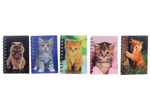 Zápisník s 3D efektom s motívom mačiek. V zápisníku je celkom 40 listov, z ktorých je 20 linkovaných a 20 nelinkovaných. Rozmery 7x10 cm. Viac dúhov - dodávame podľa skladovej dostupnosti. Výrobok nie je hračka.