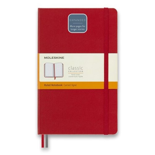 Viac strán pre dlhšie príbehy. ,Zápisník s pevnou, v chrbte šitou väzbou v kartónových doskách, obopnutý pružnou páskou proti samovoľnému otváraniu.