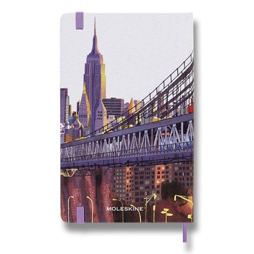 Pevná, v chrbte šitá väzba v kartónových doskách obopnutých pružnou páskou proti samovoľnému otváraniu. Titulná strana s ikonickým Brooklynským mostom, na zadnej strane, až po oblaky siahajúce, Empire State Building. Papierový obal s receptom na prípravu bagelu - samozrejme v štýle NY. Zápisník je vybavený vreckom na vizitky a drobnosti, ktorá je vyrobená z, tkaniny a kartónu, textilnou záložkou a letákom s históriou MOLESKINE. Gramáž papiera 100 g/m², neobsahuje kyseliny., rozmery 13 x 21 cm, 120 listov, linajkový., VEĽKOSTI TEMATICKÝCH ZÁPISNÍKOV:, * S - 9 x 14 cm (A6), * L - 13 x 21 cm (A5), Príbeh Francúzsku, kedy vznikol produkt s veľkou tradíciou. Zápisníky MOLESKINE si obľúbili významní umelci a myslitelia ako Vincent van, Gogh, Pablo Picasso či Ernest Hemingway. Dnes je značka Moleskine synonymom pre kultúru, cestovanie, kreativitu a osobnú identitu, a to ako v reálnom svete, tak aj vo svete digitálnom., MOLESKINE je kreatívnym a nápaditým partnerom pre dnešnú dobu.