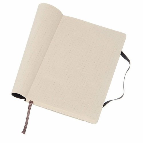 Zápisník s mäkkou, v chrbte šitou väzbou v kartónových doskách, obopnutý pružnou páskou proti samovoľnému otváraniu. Zápisník je vybavený zoraďovačom poznámok, ktorý je vyrobený z tkaniny a kartónu, textilnou záložkou a letákom s históriou Moleskine. Gramáž papiera 70 g/m2, neobsahuje kyseliny. Rozmer: 13 x 21 cm, 96 listov, bodkovaný