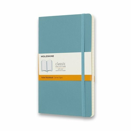 Zápisník s mäkkou, v chrbte šitou väzbou v kartónových doskách, obopnutý pružnou páskou proti samovoľnému otváraniu. Zápisník je vybavený zoraďovačom poznámok, ktorý je vyrobený z tkaniny a kartónu, textilnou záložkou a letákom s históriou MOLESKINE. Gramáž papiera 70 g/m2, neobsahuje kyseliny. Rozmer : 13 x 21 cm, 96 listov, linajkový