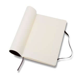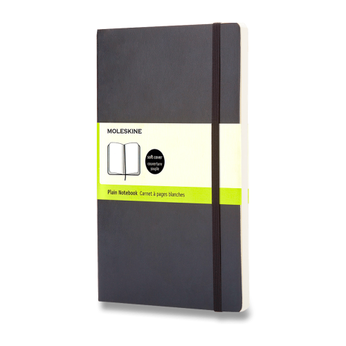 Zápisník s mäkkou, v chrbte šitou väzbou v kartónových doskách, obopnutý pružnou páskou proti samovoľnému otváraniu. Zápisník je vybavený zoraďovačom poznámok, ktorý je vyrobený z tkaniny a kartónu, textilnou záložkou a letákom s históriou MOLESKINE. Gramáž papiera 70 g/m2, neobsahuje kyseliny. Rozmer: 9 x 14 cm, 96 listov, čistý