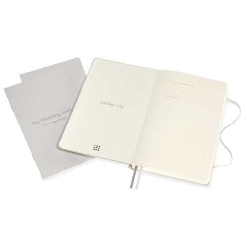 Zápisník s pevnou, v chrbte šitou väzbou v kartónových doskách s reliéfnym zdobením. Obopína ho pružná páska proti samovoľnému otváraniu. Zápisník je vybavený 2 textilnými, záložkami, dvojitým vnútorným vreckom, farebnými samolepkami a letákom s históriou MOLESKINE. Zápisník je rozdelený do 10 tematických sekcií so špecifickým rozvrhnutím strán (inšpirácie a, nápady, rozpočet, hostia, obrad, svadobná hostina, kvety a dekorácie, fotografie, video a hudba, svadobná cesta, poznámky, adresár), obsahuje 2 samostatné zápisníky pre nevestu,, predsvadobné a predsvadobné 12-tich mes. papiera 70 g/m2, neobsahuje kyseliny. , ROZMER: 13 X 21 CM, 188 LISTŮ + 2 PRÍRUČKY, Zápisník je v anglickom jazyku., O ZNAČKE MOLESKINE:, Príbeh značky MOLESKINE sa začal písať už v 19. storočí vo Francúzsku, kedy vznikol produkt s veľkou tradíciou. Zápisníkov MOLESKINE si obľúbili významní umelci a myslitelia ako Vincent van, Gogh, Pablo Picasso či Ernest Hemingway. Dnes je značka Moleskine synonymom pre kultúru, cestovanie, kreativitu a osobnú identitu, a to ako v reálnom svete, tak aj vo svete digitálnom., MOLESKINE je kreatívnym a nápaditým partnerom pre dnešnú dobu >>