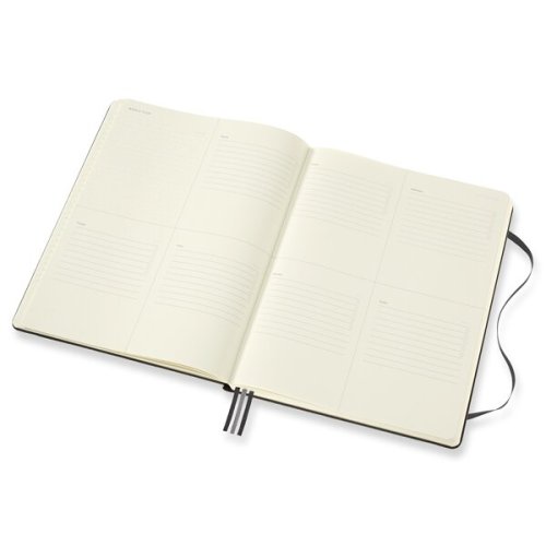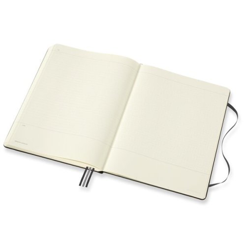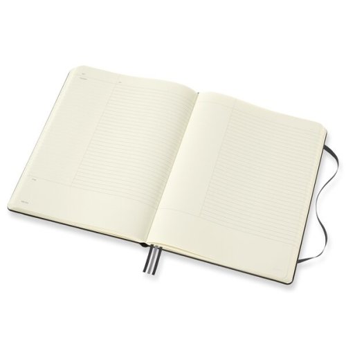 Novinka professional zápisník projektový. Tento originálny nedatovaný zápisník je určený skutočným profesionálom, pretože spája výhody diára s výhodami zápisníka: doplňte dni a dáta, ako uznáte za vhodné, použite toľko strán, koľko na konkrétny deň práve potrebujete! Tento čierny projektový zápisník má pevnú, v chrbte šitú väzbu v kartónových doskách. Obopína ho pružná páska proti samovoľnému otváraniu. Zápisník je rozdelený do troch hlavných sekcií, z ktorých každá je venovaná konkrétnemu účelu - inšpirácia, plánovanie a protokolovanie, ďalej obsahuje nedatované plánovacie sekcie, s ročnými, 4-mesačnými, mesačnými a týždennými prehľadmi. Pre jednoduchú orientáciu sú stránky číslované, posledné stránky číslované nie sú a dajú sa ľahko vytrhnúť. Súčasťou zápisníky sú samolepky, praktické vnútorné vrecko, ktoré je vyrobené z tkaniny a kartónu, a leták s históriou Moleskine. Papier s gramážou 70 g/m2 neobsahuje kyseliny.