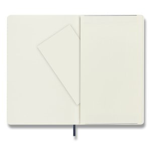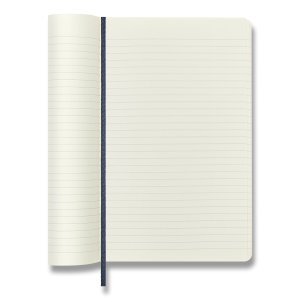 Zápisník s mäkkou, v chrbte šitou väzbou v kartónových doskách, obopnutý pružnou páskou proti samovoľnému otváraniu. Zápisník je vybavený zoraďovačom poznámok, ktorý je vyrobený z tkaniny a kartónu, textilnou záložkou a letákom s históriou MOLESKINE. Gramáž papiera 70 g/m2, neobsahuje kyseliny. Rozmer : 13 x 21 cm, 96 listov, linajkový
