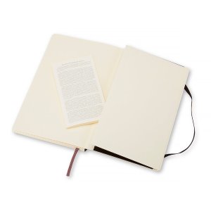 Zápisník s mäkkou, v chrbte šitou väzbou v kartónových doskách, obopnutý pružnou páskou proti samovoľnému otváraniu. Zápisník je vybavený zoraďovačom poznámok, ktorý je vyrobený z tkaniny a kartónu, textilnou záložkou a letákom s históriou Moleskine. Gramáž papiera 70 g/m2, neobsahuje kyseliny. Rozmer: 13 x 21 cm, 96 listov, štvorčekový