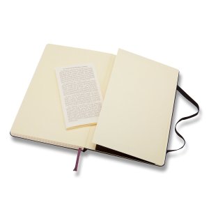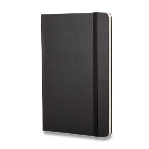 Zápisník s pevnou, v chrbte šitou väzbou v kartónových doskách, obopnutý pružnou páskou proti samovoľnému otváraniu. Zápisník je vybavený zoraďovačom poznámok, ktorý je vyrobený z tkaniny a kartónu, textilnou záložkou a letákom s históriou MOLESKINE. Gramáž papiera 70 g/m2, neobsahuje kyseliny. Rozmer : 13 x 21 cm, 120 listov, štvorčekový