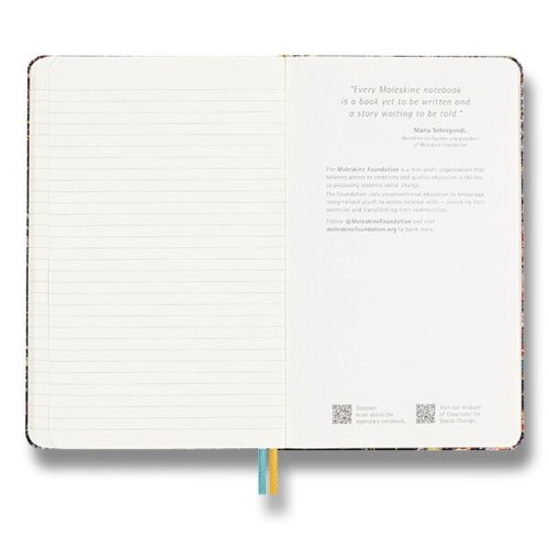 Pevná, v chrbte šitá väzba v kartónových doskách obopnutých pružnou páskou proti samovoľnému otváraniu. Zápisník vybavený vreckom na vizitky a drobnosti, ktorá je vyrobená z tkaniny a, kartónu, textilnej záložkou, dvoma šťasnými obálkami v rôznych farbách a letákom s históriou MOLESKINE. Gramáž papiera 100 g/m², neobsahuje kyseliny., rozmery 13 x 21 cm, 88 listov, linajkový. Zápisník je v anglickom jazyku., VEĽKOSTI TEMATICKÝCH ZÁPISNÍKOV:, * S - 9 x 14 cm (A6), * L - 13 x 21 cm (A5), Dodávané v kartónovom darčekovom boxe., O ZNAČKE MOLESKINE: , Príbeh značky MOLES, , Príbeh značky MOLES. kedy vznikol produkt s veľkou tradíciou. Zápisníky MOLESKINE si obľúbili významní umelci a myslitelia ako Vincent van, Gogh, Pablo Picasso či Ernest Hemingway. Dnes je značka Moleskine synonymom pre kultúru, cestovanie, kreativitu a osobnú identitu, a to ako v reálnom svete, tak aj vo svete digitálnom., MOLESKINE je kreatívnym a nápaditým partnerom pre dnešnú dobu.