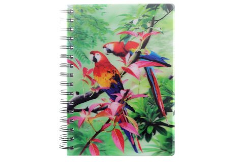 Zápisník s 3D efektom s motívom Papagájov. V zápisníku je celkom 100 listov, z ktorých je 50 linkovaných a 50 nelinkovaných. Formát A5. Výrobok nie je hračka.