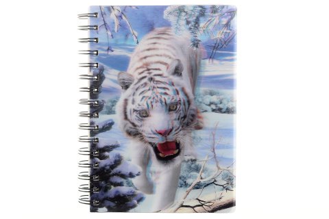 Zápisník s 3D efektom s motívom Bieleho tigra. V zápisníku je celkom 100 listov, z ktorých je 50 linkovaných a 50 nelinkovaných. Formát A5. Výrobok nie je hračka.