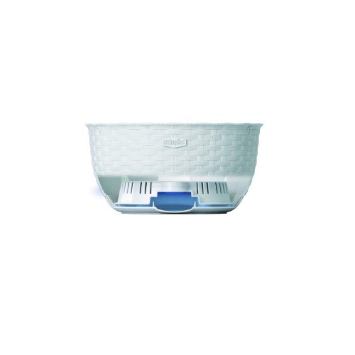 Plastová samozavlažovacia žardinka verne imituje rattánový výplet. Farba: biela. Šírka: 30 cm, výška: 15 cm, hĺbka: 30 cm.