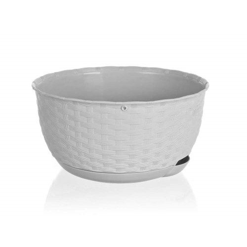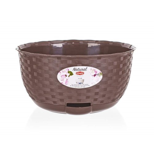 Plastová samozavlažovacia žardinka verne imituje rattánový výplet. Farba: hnedo šedá. Šírka: 30 cm, výška: 15 cm, hĺbka: 30 cm.