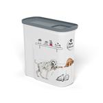 Zásobník má špeciálne veko s dômyselným dizajnom pre ľahké plnenie , ktoré je možné otvárať 2 spôsobmi. Ak patríte medzi tých, ktorí presne dávkujú krmivo svojim maznáčikom, uľahčí vám to vnútorná stupnica . Kompaktné rozmery a odolná rukoväť uľahčia manipuláciu a prenášanie. Jeho objem sú 2 l, takže do neho uložíte až 1,5 kg granúl .