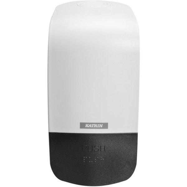 Inovovaný biely plastový zásobník na penové/tekuté mydlo Veľké tlačidlo na prednom kryte umožňuje jednoduchú obsluhu dávkovača bez námahy Dávkovač je vhodný pre mydlo v cartridgách Katrin - penové (348.400) …