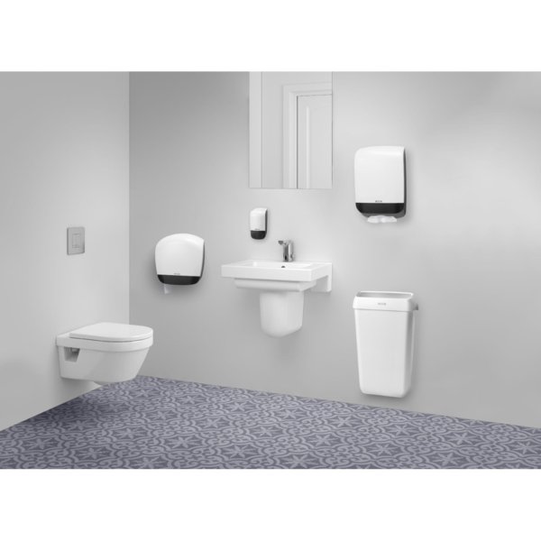 Zásobník toaletného papiera pre veľké rolky Zásobník je možné uzamknúť kľúčom Ekonomické využitie celej rolky so zabudovaným držiakom dutinky Veľké rolky papiera sú vhodné pre toalety s veľkým zaťažením a …
