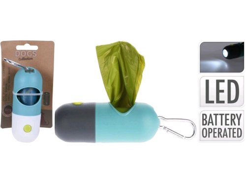 Zásobník na vrecká DOGS s LED svetlom a karabínou.