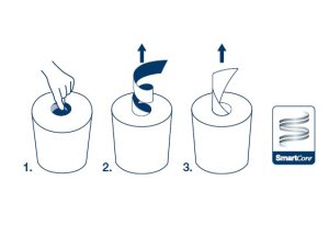 Zásobník na toaletný papier Tork SmartOne Mini so sredovým odvíjaním T8 eliminuje odpad spôsobený roztočením rolky. Zásobník má úžasnú kapacitu 1150 útržkov , ktoré dávkuje po jednom, čo výrazne zníži spotrebu až o 40% v porovnaní s tradičnými zásobníkmi na jumbo role. Vďaka tomu vystačí každá rola pre viacerých návštevníkov. Navyše sa hosť dotýka iba útržku, ktorý používa, takže sa minimalizuje riziko prenosu vírusov a baktérií.