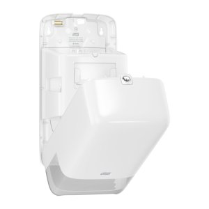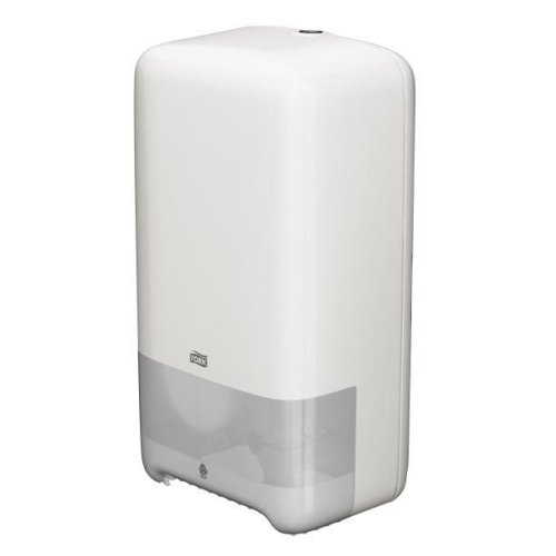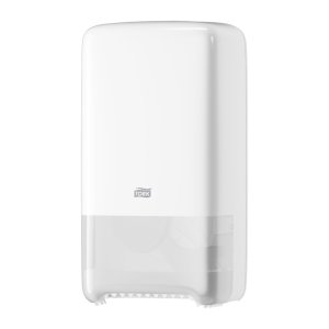 Zásobník Tork Twin-Box T6 v bielej farbe je určený na dve kompaktné rolky toaletného papiera s dĺžkou 100 m.