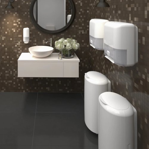 Plastový zásobník na toaletný papier je vhodný najmä do prostredia verejných toaliet s veľkou spotrebou toaletného papiera. Vďaka možnosti uloženia dvoch rolí nie je potrebné tak častého doplňovania.