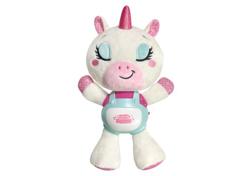 Zaspávač jednorožec s efektmi. Veľkosť 29cm. batérie 3xAAA nie sú súčasťou. Prepínač on/off na boku zvieratka. Stlačením bruška sa spúšťa zvukové efekty- 1. stlačenie uspávanka, 2. stlačenie upokojujúca hudba, 3. stlačenie chrápania, 4. stlačenie iba svetlo, 5. stlačenie vypnutia, 6. stlačenie cycle