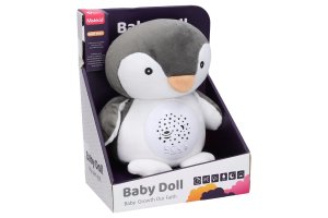 Zaspávací tučniak plyšový. Rozmery 26x12x25 cm. Funkcia svetla - 7 farieb, môžu sa automaticky meniť. 10 melódií, 4 biely šum. Možnosť nastavenia hlasitosti. Automatické vypnutie po 30 minútach. 3xAAA batérie, nie sú súčasťou.