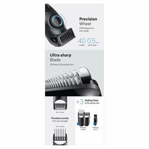 Zastrihávač fúzov Braun Series 3 BT3520 vám poskytne maximálnu kontrolu nad stylingom a precízne výsledky pri každom ťahu. Vďaka extrémne ostrému britu a technológii PrecisionWheel si ľahko nastavíte ideálnu dĺžku a dosiahnete dokonale upravený vzhľad.