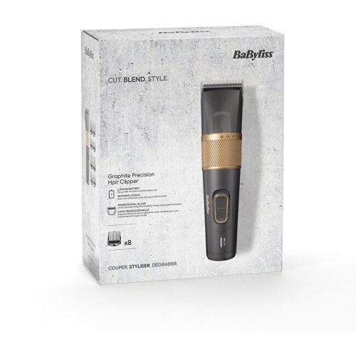 Výkonný zastrihávač vlasov v elegantnom prevedení, vhodný pre bezdrôtové aj sieťové použitie. Vďaka odolným grafitovým čepeliam a až 160 minútovej výdrži batérie umožňuje precíznu úpravu vlasov bez obmedzenia. Nastavenie dĺžky je jednoduché vďaka otočnému prstencovi priamo na tele zastrihávača. Odnímateľné a umývateľné čepele zaisťujú jednoduchú údržbu. Súčasťou balenia je pevné puzdro, nástavce, olejček a čistiaca kefka.